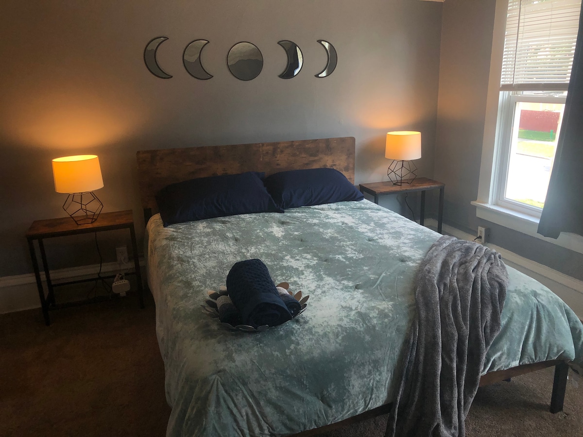 Kuja mjini kutembelea familia, marafiki, au kutafuta tu mahali pa kukimbilia (au pengine karantini) huko Batavia inayopendeza? Karibu kwenye fleti yetu mpya yenye vyumba 2 vya kulala na vitanda 2 vya ukubwa wa King, kitanda cha Malkia cha futon, na mabafu 2 kamili yaliyo katikati ya Downtown Batavia kwenye Mtaa maarufu wa Mto! Iko umbali wa hatua chache tu kutoka kwenye maduka kadhaa, baa, mikahawa na soko la wakulima, hii ni likizo bora kwa mwanamuziki yeyote au shabiki wa muziki au mpenzi wa burudani za usiku.