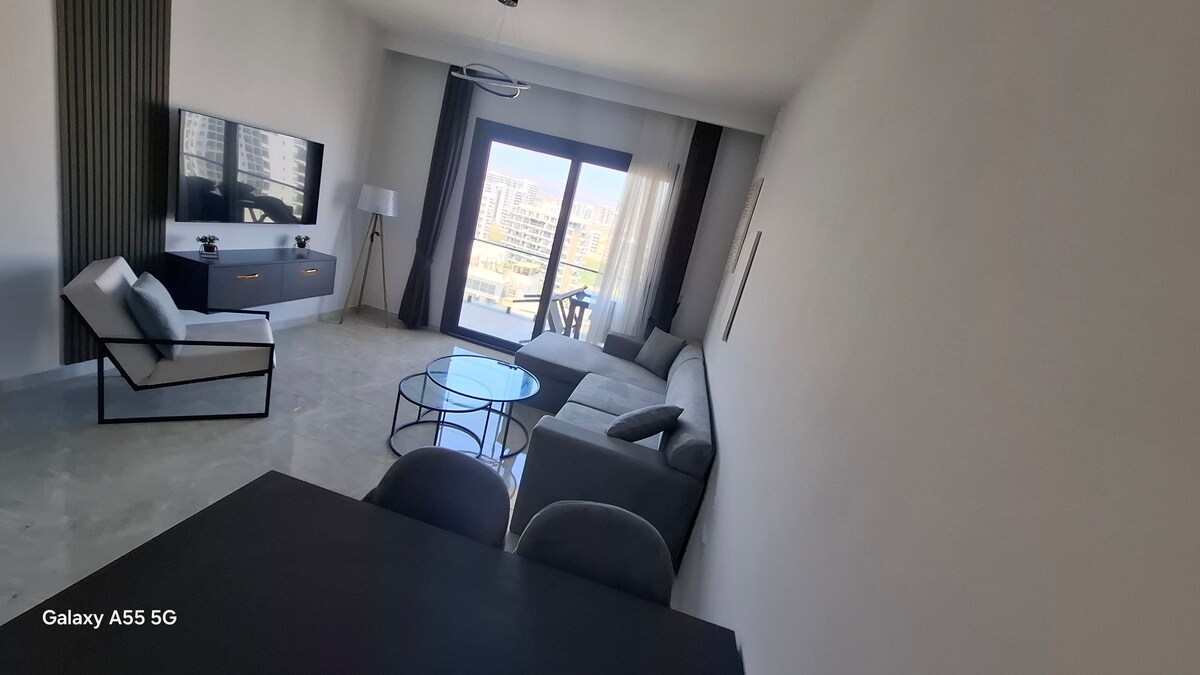 Fleti ya 1+1 katika jua la kifalme Inalala hadi watu 5. Kila kitu unachohitaji kiko ndani ya umbali wa kutembea katika jengo hilo. Una mabwawa 2 ya kuogelea, ukumbi wa mazoezi, uwanja wa tenisi wa mpira wa miguu/pikipiki. Nje ya jengo kuna duka la jumla, duka la mikate, mabucha, duka la dawa, duka la kahawa, mgahawa, baa na mengine mengi. Umezungukwa na kasino 3 MERIT, THE ARKIN na GRAND SAPPHIRE CASINO ambayo ni umbali wa kutembea kutoka kwenye fleti. Pia SKYLINE BAR AND LOUNGE iko karibu. Bahari ya Longbeach iko umbali wa kutembea