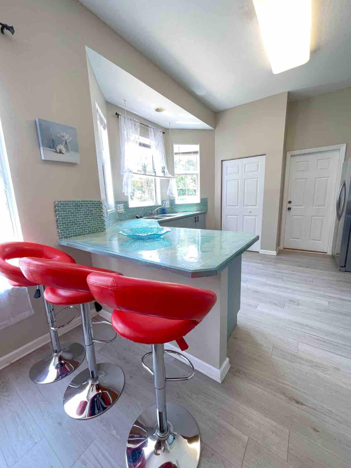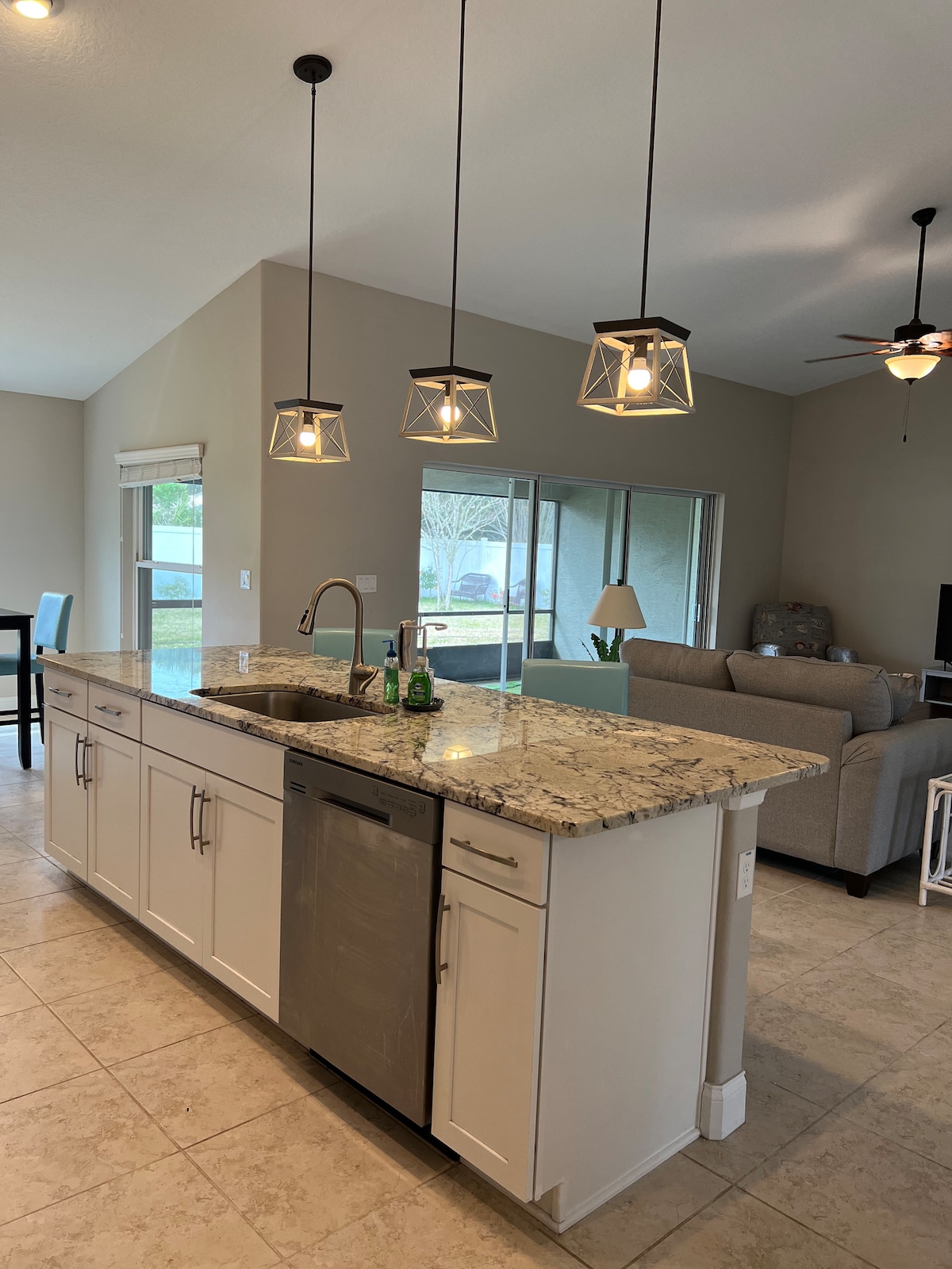 Sahau wasiwasi wako katika nyumba hii yenye nafasi kubwa na tulivu ya futi za mraba 3,000 katika kitongoji salama, chenye urafiki. Ina vyumba 3 vya kulala vya kifalme, kila kimoja kina televisheni na mabafu 3 (2 yenye mabeseni). Furahia vyumba 2 vya kulia chakula, sebule kubwa iliyo na televisheni ya inchi 75 na fanicha iliyoegemea, pamoja na jiko kubwa lenye stoo ya chakula. Pumzika kando ya bwawa (futi 28x12) ukiwa na viti vya nje, miavuli na jiko la kuchomea nyama. Karibu na fukwe, maduka, migahawa, pickleball, matembezi na zaidi. Saa 1.5 kwa bustani za mandhari na viwanja vya ndege. Usivute sigara wala wanyama vipenzi.