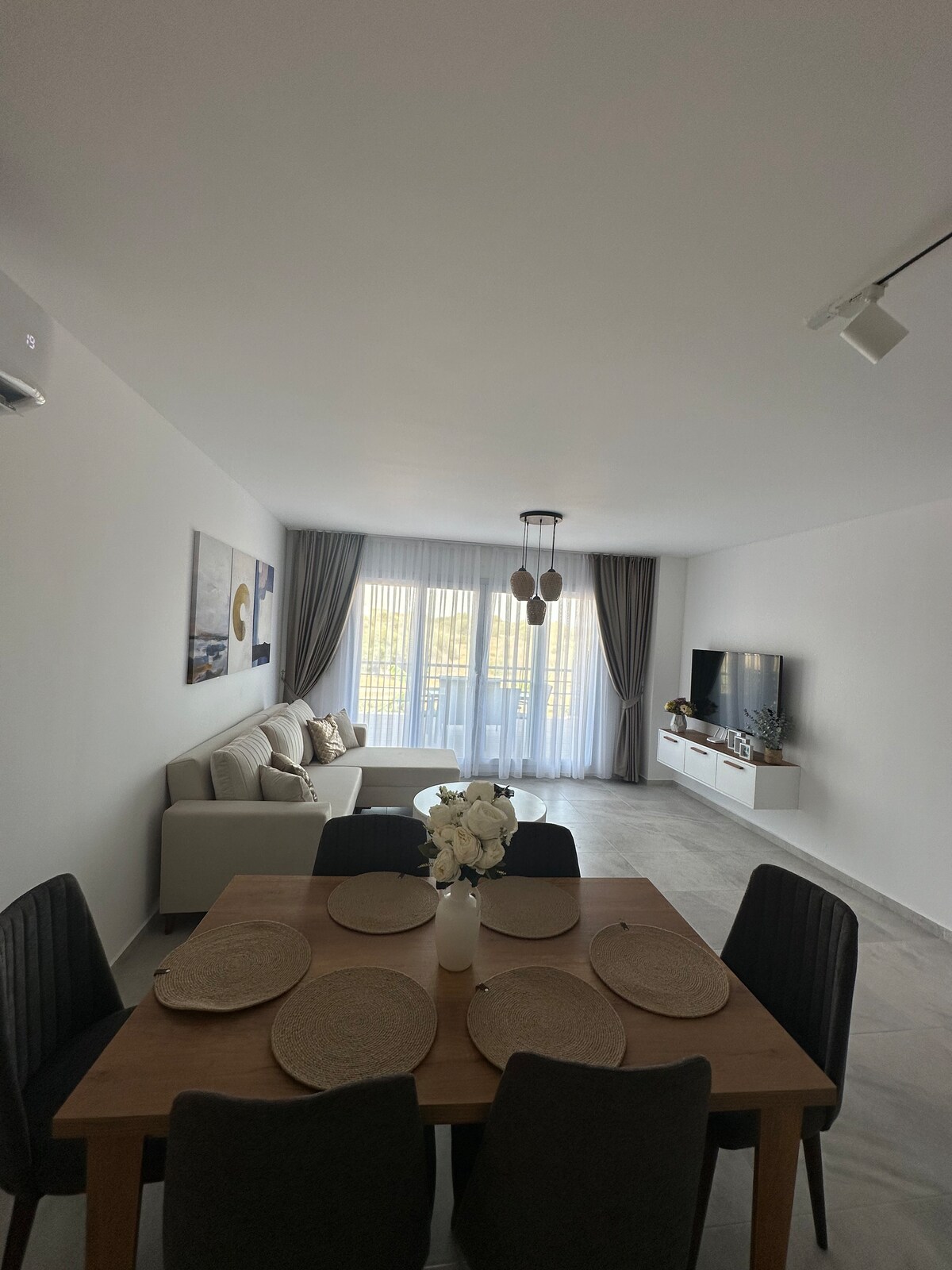 🌊 Fleti ya mtindo wa Boho mita 200 tu kutoka baharini na mikahawa. Jiko lenye vifaa, Netflix, A/C na roshani. Ufikiaji wa bure wa bwawa, sauna, hammam, ukumbi wa mazoezi, uwanja wa tenisi, uwanja wa michezo na kadhalika. Maduka makubwa yapo umbali wa mita 100 tu, yanafunguliwa kila siku kuanzia saa 1:30 asubuhi hadi saa 4:30 usiku. Mahali pazuri kwa ajili ya mapumziko na jasura, pamoja na kasinon za karibu na punda wa porini kando ya bahari ambao hutembea kando ya gari lako. Sehemu ya kukaa ya kipekee kabisa inasubiri!