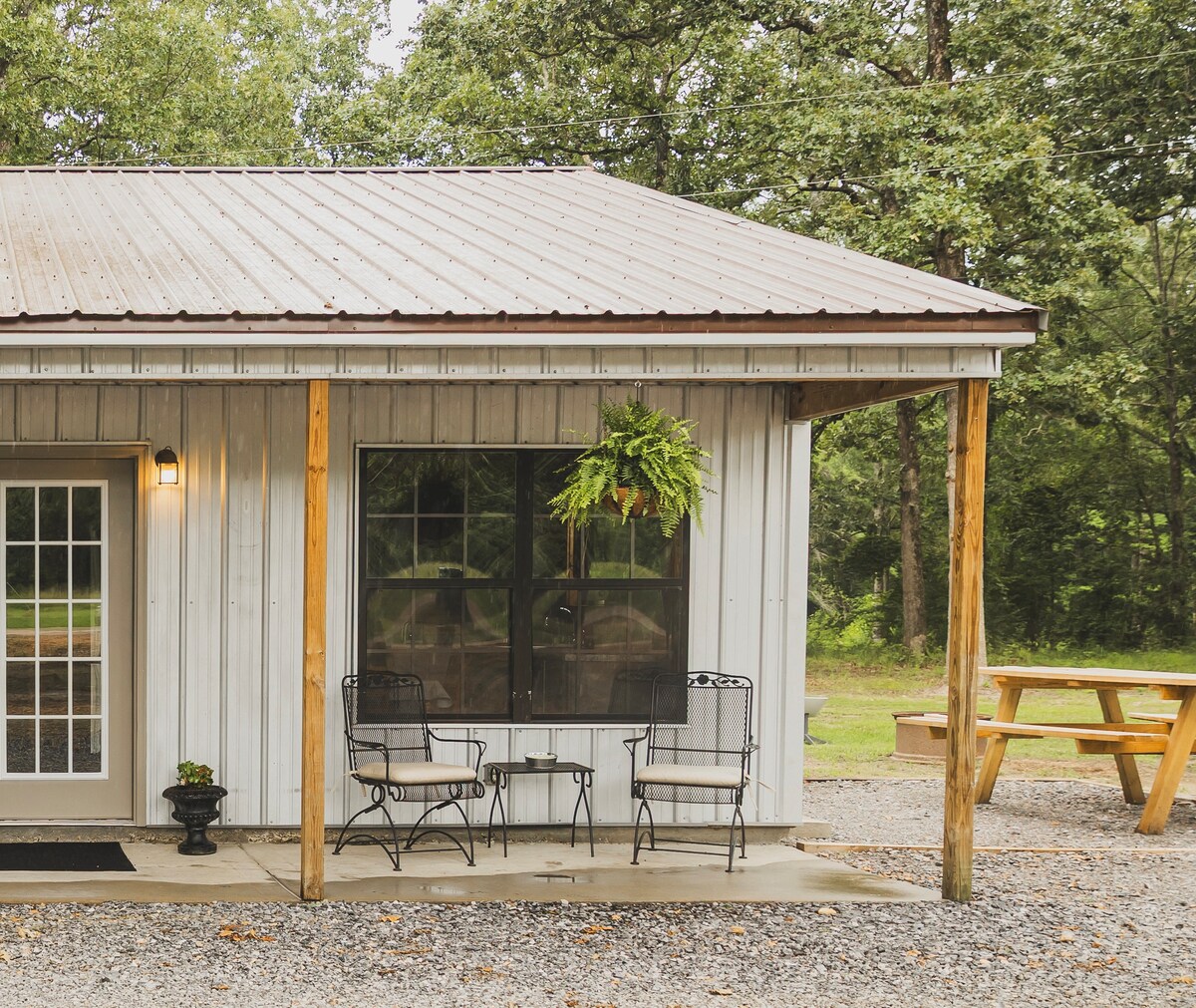 Jitulize katika likizo hii ya kipekee na tulivu ya ekari 15. Kaa na upumzike kwenye ukumbi unapohisi upepo kidogo huku ukifurahia amani ya majani ya mwaloni yakiimba upepo. Ndege wanapiga kelele na wanaonekana kuimba muziki unaoupenda. Jani linacheza kwa uhuru katika upepo. Inamisha kichwa chako nyuma na uhisi mionzi ya jua usoni mwako unaponyoosha mikono yako, pumua katika hewa safi na upumzishe akili yako ili kila kitu kiwe.
