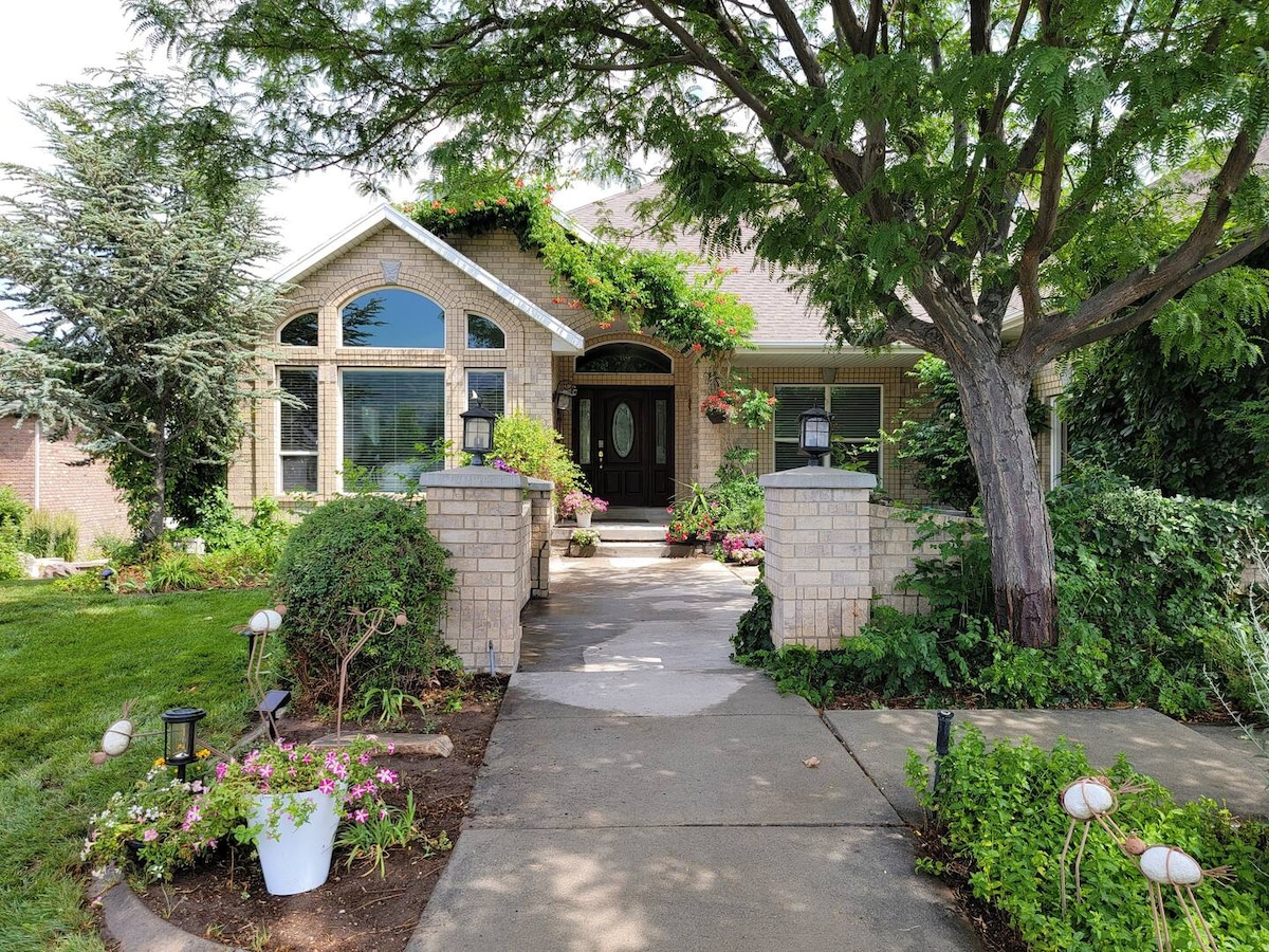 Nyumba yako ya nyumbani inayofaa kwa likizo, kazi au kutembelea familia ya Utah! Starehe sana, sehemu nyingi za kuenea, tani za jua, jiko lenye vifaa kamili na mashine ya kuosha/kukausha. Hii si nyumba yako ya kawaida ya MIL. Ni KUBWA na iko kwenye usawa wa chini na madirisha MENGI ambayo yanafunguka kwenye ua mzuri wa kujitegemea ulio na baraza. Furahia mandhari ya mlima, mandhari ya jiji na machweo pamoja na maili ya njia za kutembea/baiskeli kutoka kwenye nyumba na bustani iliyo karibu! Hakuna sehemu za pamoja ndani au nje.
