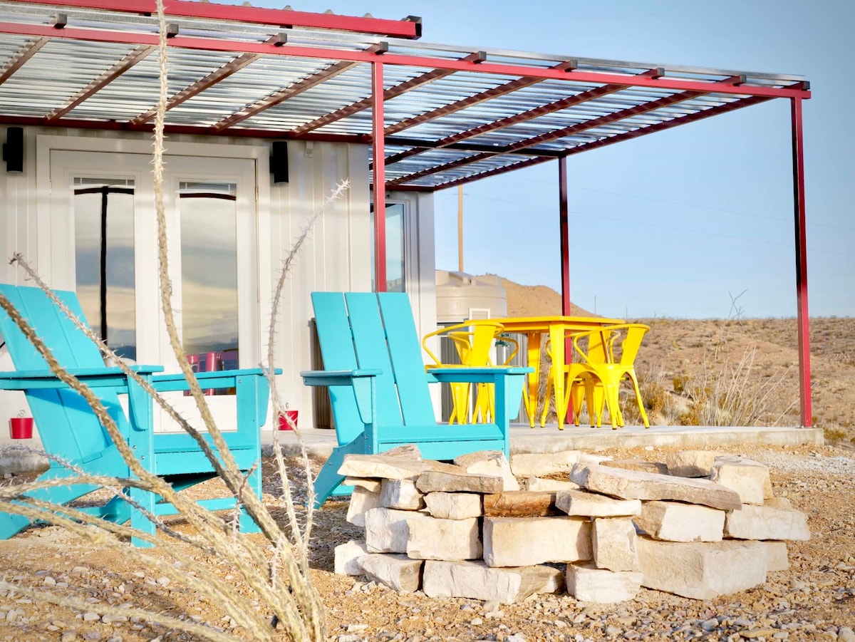 Karibu kwenye nyumba yetu ya kupendeza ya chombo cha usafirishaji, eneo zuri la mapumziko lililowekwa katikati ya mazingira ya asili. Nyumba hii ya kipekee ina mchanganyiko wa starehe na haiba ya kisasa, inayofaa kwa wale wanaotafuta likizo ya kupumzika. Iko saa moja kutoka Hifadhi ya Taifa ya Big Bend na dakika mbali na Alpine inawapa wasafiri ufikiaji rahisi wa bustani na mji. Utakuwa na uhakika wa kupata usiku wa ajabu wa kulala kwenye kitanda cha starehe cha kumbukumbu cha povu. Amka ukihisi kuburudika na uende hadi kwenye staha ya juu kwa ajili ya kahawa yako ya asubuhi.
