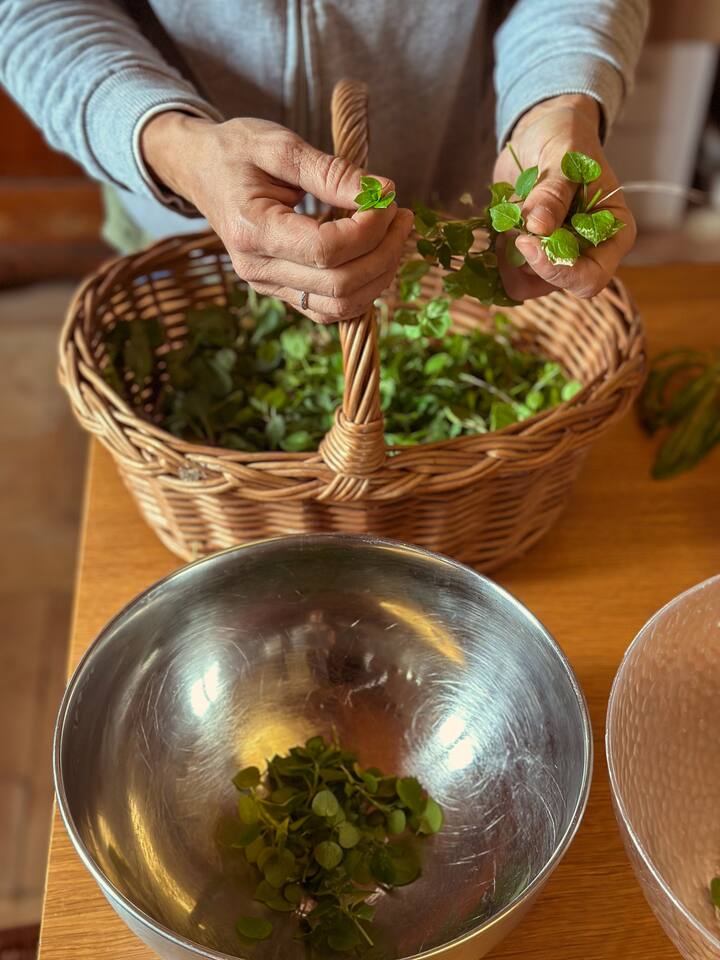 Jiunge na ukusanyaji wa mimea ya asili na Francesca, fuata somo lake la kupika ili kutengeneza pesto na mimea iliyokusanywa na sahani tamu ya gnudi maremmani pamoja na moja ya mvinyo wetu.