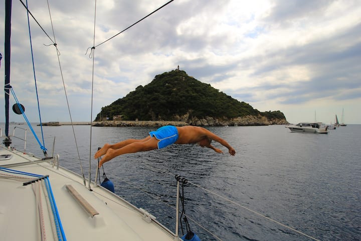 Safari ya binafsi ya mashua katika Bahari ya Liguria, ikiongozwa na rubani mtaalamu, na mapumziko ya kupiga mbizi na kupiga mbizi. Uwezekano wa kujaribu kuendesha.