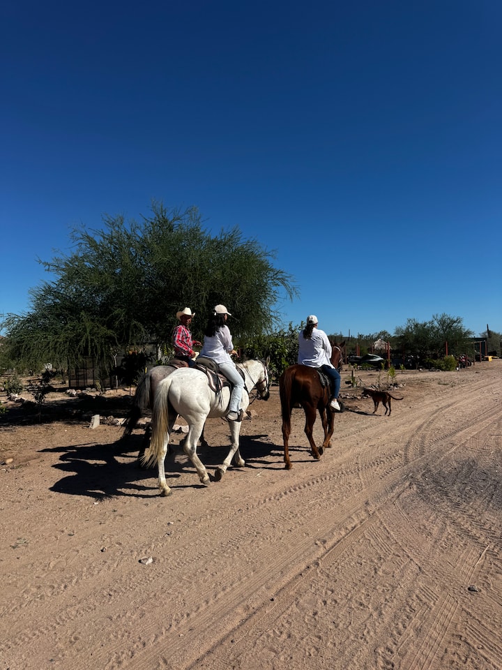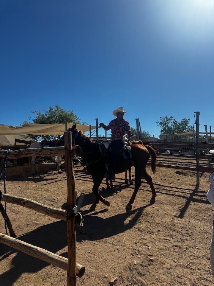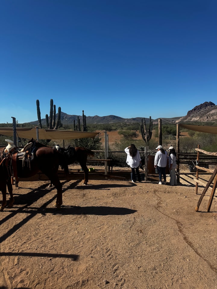 Tulikuwa na uzoefu mzuri wa kupanda farasi! Shamba la mifugo ni zuri, limejaa wanyama na mandhari ni ya kuvutia. Mwongozo ulikuwa wa kirafiki na wa kitaalamu na farasi walikuwa watulivu, wenye afya na walitunzwa vizuri sana. Kila kitu kilipangwa vizuri na tulihisi tuko salama na tulistareheka wakati wote. Bila shaka tutaweka nafasi tena, inapendekezwa sana!