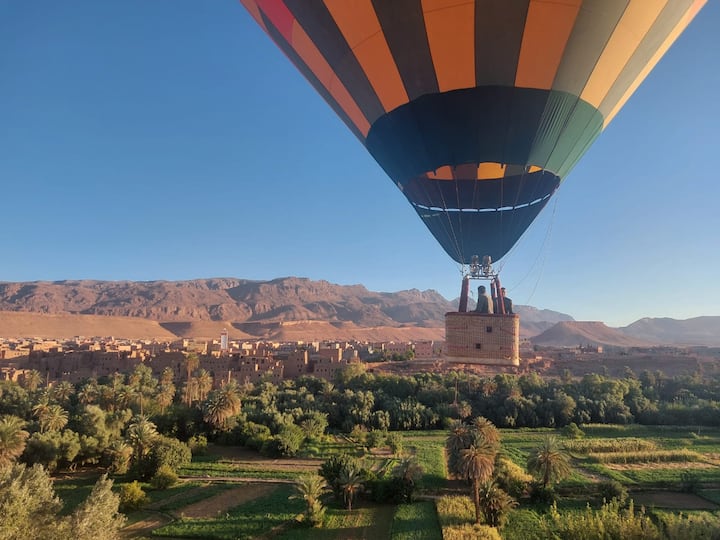 Safiri na rubani anayeaminika ili kushuhudia miundo ya miamba ya kupendeza, miti ya mitende na kasbah, ikifuatiwa na kifungua kinywa cha Morocco.