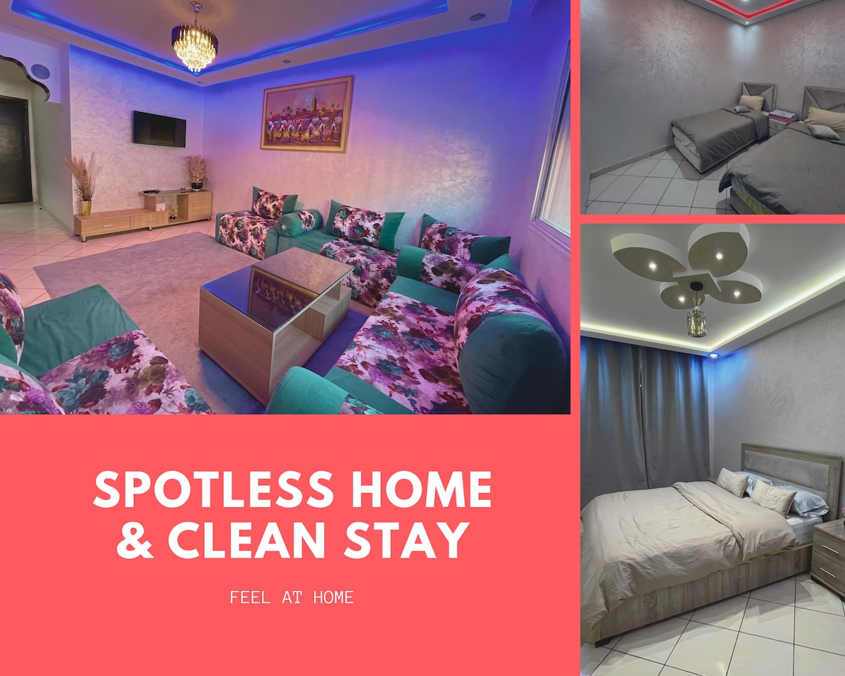 Retraite Tranquille | Moderne | Climatisé | 15min Plage | Wifi | Netflix | 15min Stade Adrar Agadir Bienvenue dans notre appartement moderne et neuf situé dans un quartier sécurisé proche de toutes commodités. Il comprend deux chambres confortables, un salon chic avec TV connectée et Netflix, une salle de bain propre et une cuisine équipée. Vous apprécierez son atmosphère chaleureuse qui vous fera sentir chez vous dès votre arrivée 🧾 Une facture de réservation est disponible pour votre séjour