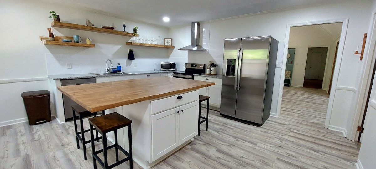 >>Tazama video zetu za IG kwa zaidi @anchorsaway_lakesinclair<< Nyumba iliyokarabatiwa, yenye nafasi kubwa/sehemu kubwa ya nje kwenye maji ya kina kirefu ya Ziwa Sinclair. 3 br, 2 ba + Queen huvuta sofa kwa starehe 8. Furahia ziwa na kayaki zetu, ubao wa kupiga makasia, kitanda cha kuogelea, vifaa vya uvuvi. Weka mashua yako katika Twin Bridges Marina na ufunge kizimbani kwetu. Baada ya kufurahia maji, ingia kwenye beseni la maji moto, pika kwenye jiko la kuchomea nyama, choma vyakula kwenye shimo la moto, cheza shimo la mahindi.