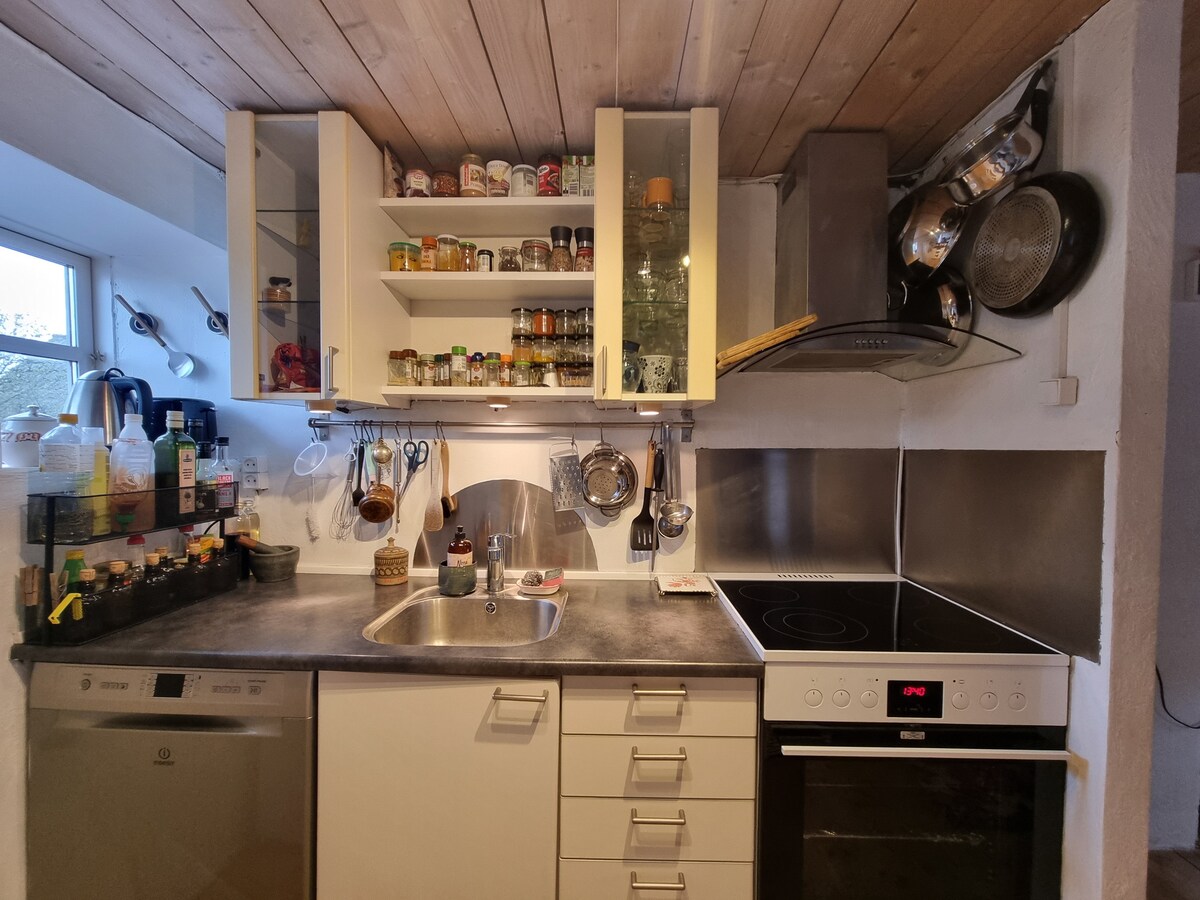 Bornholm ina nguvu maalumu na pia nyumba hii. Hasle na mazingira yake hutoa mengi ya kuchunguza na unaweza kuwasiliana nami kila wakati ili niende/kufanya vidokezi. Kimsingi kuna kila kitu katika umbali mfupi tu wa kutembea, linapokuja suala la bidhaa na mazingira ya asili. Kuna vitu vyote muhimu kwa ajili ya ukaaji wako. Eneo hilo ni la kati, tulivu na salama. Ikiwa inahitajika ningeweza kutoa baiskeli ya mlimani na gari kwa bei nzuri. Unaweza pia kuweka nafasi ya safari ya uvuvi au kusafiri pamoja nami kwenye mashua yangu ndogo yenye starehe.