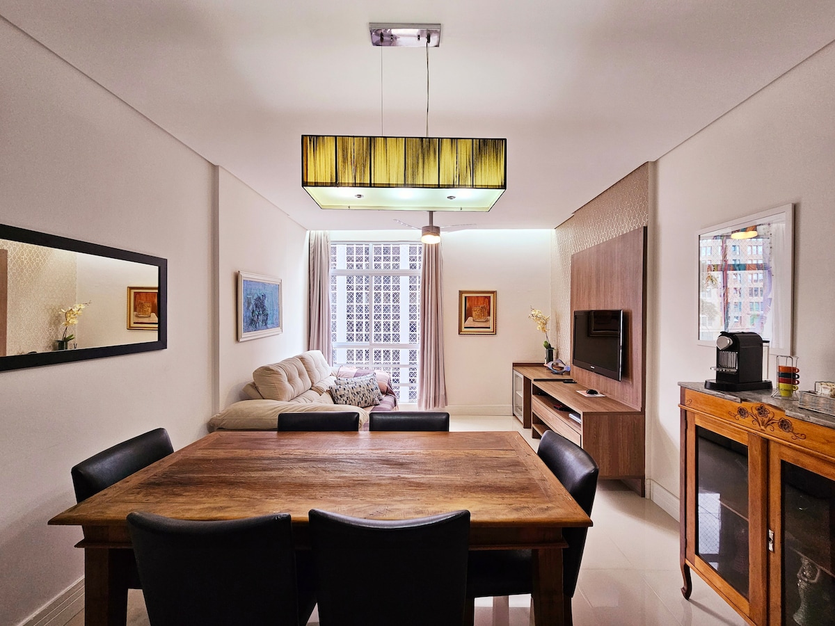 Fleti maridadi ya m² 50 iliyo Bela Vista, ina mlinzi wa saa 24. Vyumba 2 vya kulala (1 tu na AC, na kitanda cha malkia, cha pili ni kidogo sana na kinaweza kutumika kama ofisi, kinatoshea kitanda cha sofa cha ukubwa wa mara mbili) na bafu 1. Kukiwa na mandhari ya ajabu kutoka kila dirisha, ni mahali pazuri pa kufanya kazi na kupumzika. Ndege binafsi ya bomba kwenye roshani ni mahali pazuri pa kufurahia mandhari ya jiji. Inafaa kwa wanandoa, wataalamu au familia ndogo zinazotafuta starehe, urahisi na mojawapo ya mandhari bora zaidi jijini.