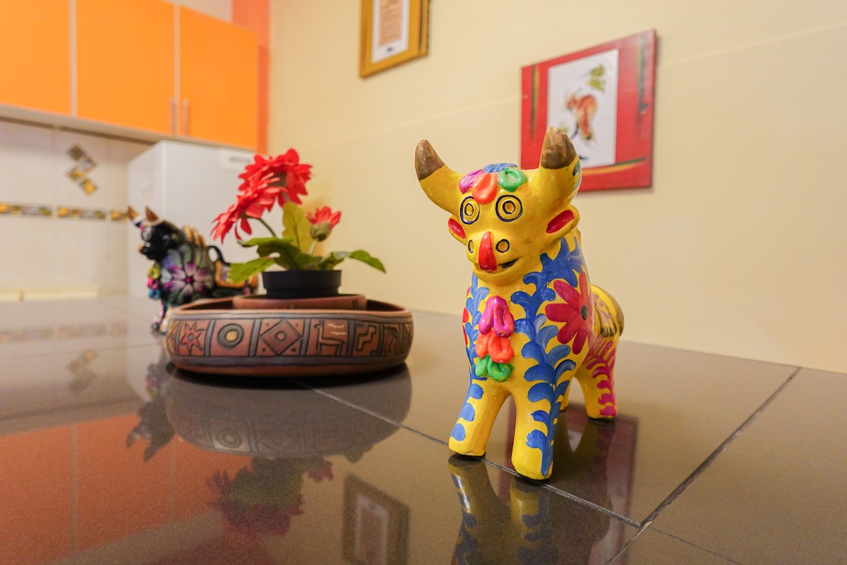 "100% ya tathmini ★★★★★ Kupumzika katika ghorofa hii nzuri iko katika eneo la kisasa la makazi ya Cusco, iliyopambwa na tani za neutral ili kufikia hali ya amani ya utulivu. ★ Usafiri wa umma wa mita 200 Vitalu ★ vichache kutoka kwenye maduka makubwa, maduka makubwa, mikahawa, benki, ★ Fleti ina televisheni ya kebo, muunganisho wa WIFI ni mzuri sana, vyumba vya starehe, sebule yenye nafasi kubwa."