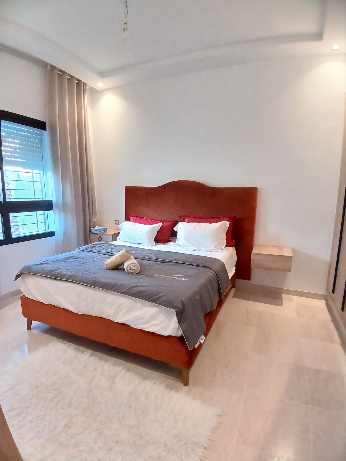 Beautiful S+1 kwenye ghorofa ya chini iliyoko katikati ya Marsa (Marsa Saada) mita chache kutoka Lycée Francais , katika marumaru ya kijivu, iliyo na sebule, jiko zuri lililo na kila kitu, bafu na nyumba ya mbao ya kuoga, chumba kikubwa cha kulala, nyota 2, inapokanzwa kati: ⚠️⚠️microwave, mashine⚠️ ya kuosha ⚠️tV4k smart(njia zote zilizosimbwa) ⚠️intaneti yenye kasi kubwa sana dej na⚠️ meza ya kazi Kitongoji tulivu sana na salama. ⛔Matukio hayaruhusiwi