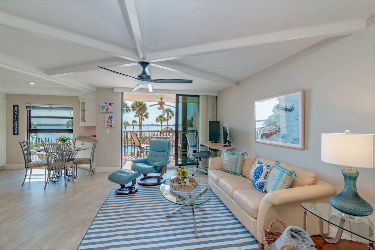 Kondo ya Kipekee ya Ufukweni na Mandhari Maridadi ya Pwani, Wanyamapori, Uvuvi, Gati la Boti. Kitalu 1 kutoka Snook Inn! Bwawa la Karibu Lipo Mbali na Baraza. IMEKARABATIWA HIVI KARIBUNI! Bwawa na Nyua 2 za Kujitegemea zinazoelekea Ufukwe Mzuri, Pomboo, Ng'ombe wa Baharini, Ndege wa Kigeni. Ghorofa Kuu -hakuna ngazi. Ikiwa unapenda maji na WANYAMA PORI, eneo hili ni kwa ajili yako! Uvuvi kwenye nguzo za uvuvi wa bandari na Tack Zinazotolewa, vuta mashua yako hadi kwenye mlango wa nyuma. TANI ZA wanyamapori. Gati lina mwanga usiku, angalia maisha ya baharini! KITENGO KISICHOVUTA SIGARA