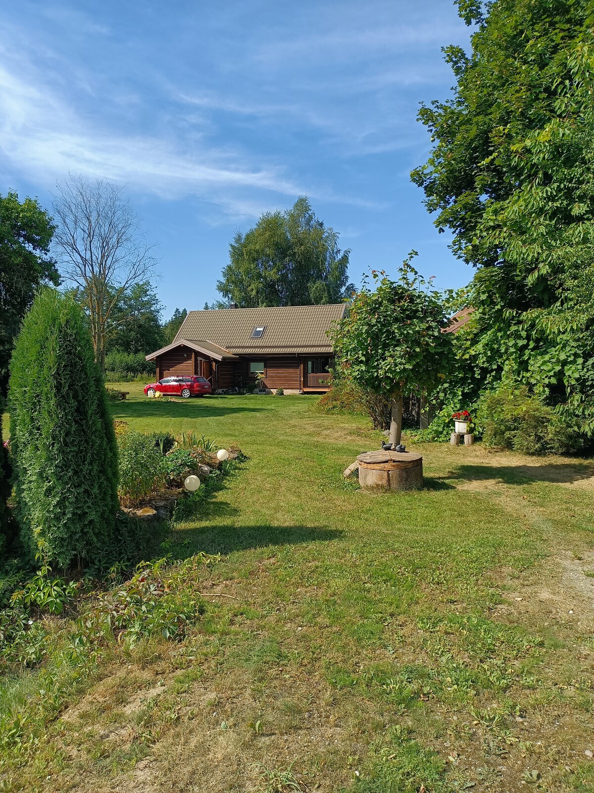 Nyumba ya Sauna karibu na Mažeikiai. Eneo liko katika kitongoji cha Zibikai, lakini mbali na makazi, ya kujitegemea vya kutosha. Nyumba ya shambani ina vistawishi vyote, maji mazuri ya bomba, birika, sahani ya moto, vyombo. Kwenye mtaro wa nje, utapumzika kwa starehe kwenye mifuko ya viti, ukivutiwa na mandhari ya mazingira ya asili. Kuna beseni kubwa la maji moto karibu na mtaro lenye uwezo wa kuchukua watu 8 kwa malipo ya ziada ya 50eur. Unapotoka kwenye scourge, utaweza kuingia kwa ajili ya kuzama kwenye mkondo wa kuburudisha Kuna uwanja wa nje wa voliboli.