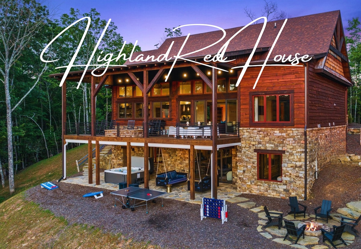 Mpya! Nyumba ya Mbao ya Kifahari, Mwonekano, Beseni la maji moto, Meko 4, Michezo