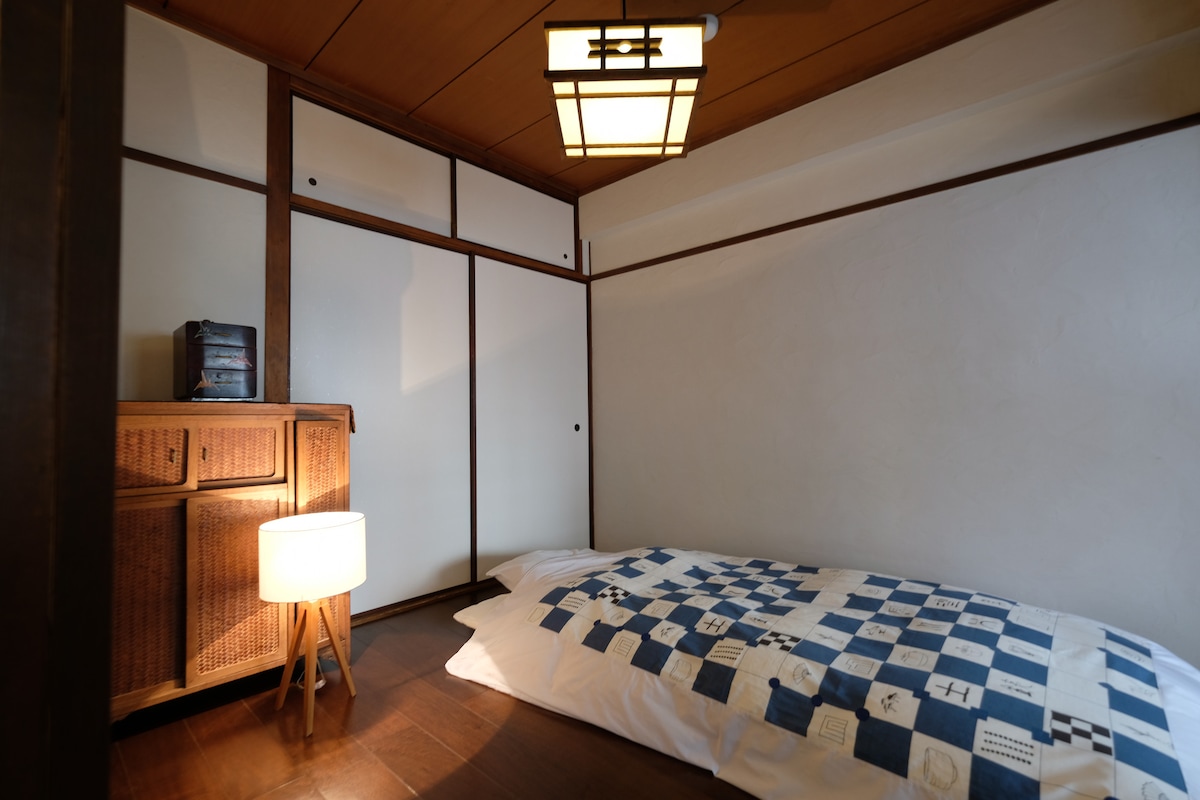Iko katika Kata ya Joto ya Osaka, nyumba hii ya kihistoria ya 1909 ni manusura nadra wa Vita Vikuu vya Pili vya Dunia. Ilikarabatiwa mwaka 2015 na mbunifu maarufu, ina urefu wa ¥ 150, ikichanganya haiba ya kihistoria na anasa ya kisasa katika mapumziko tulivu ya katikati ya jiji. Ubunifu wake wa kifahari unapatana zamani na wa sasa, ukitoa uzamishaji wa kitamaduni na starehe kubwa. Kwa mabafu mawili, vyoo vilivyotenganishwa, mabeseni ya kufulia na bafu kubwa, inahakikisha faragha na usafi kwa makundi. Pata utamaduni, historia na starehe ukaaji wako kamili wa Osaka unasubiri.