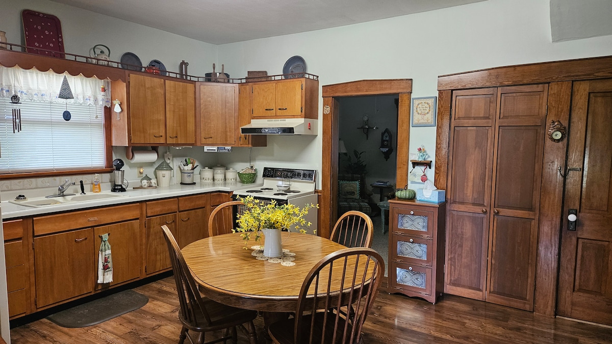Asante kwa kuangalia Nyumba ya Walnut. Ni nyumba yenye vyumba 2 vya kulala yenye vyumba 2 vya kulala 1 katikati ya mji. Ndani ya umbali wa kutembea kuna migahawa kadhaa, maduka mengi ya ndani, maduka mawili ya vyakula - moja na deli kubwa! Hifadhi ya jiji ina njia ya kutembea, maeneo ya picnic yenye kivuli, bwawa la umma, na mahakama za tenisi na mpira wa paddleball zitakamilika hivi karibuni. Njoo ukae na ufurahie mji mdogo ulio salama!
