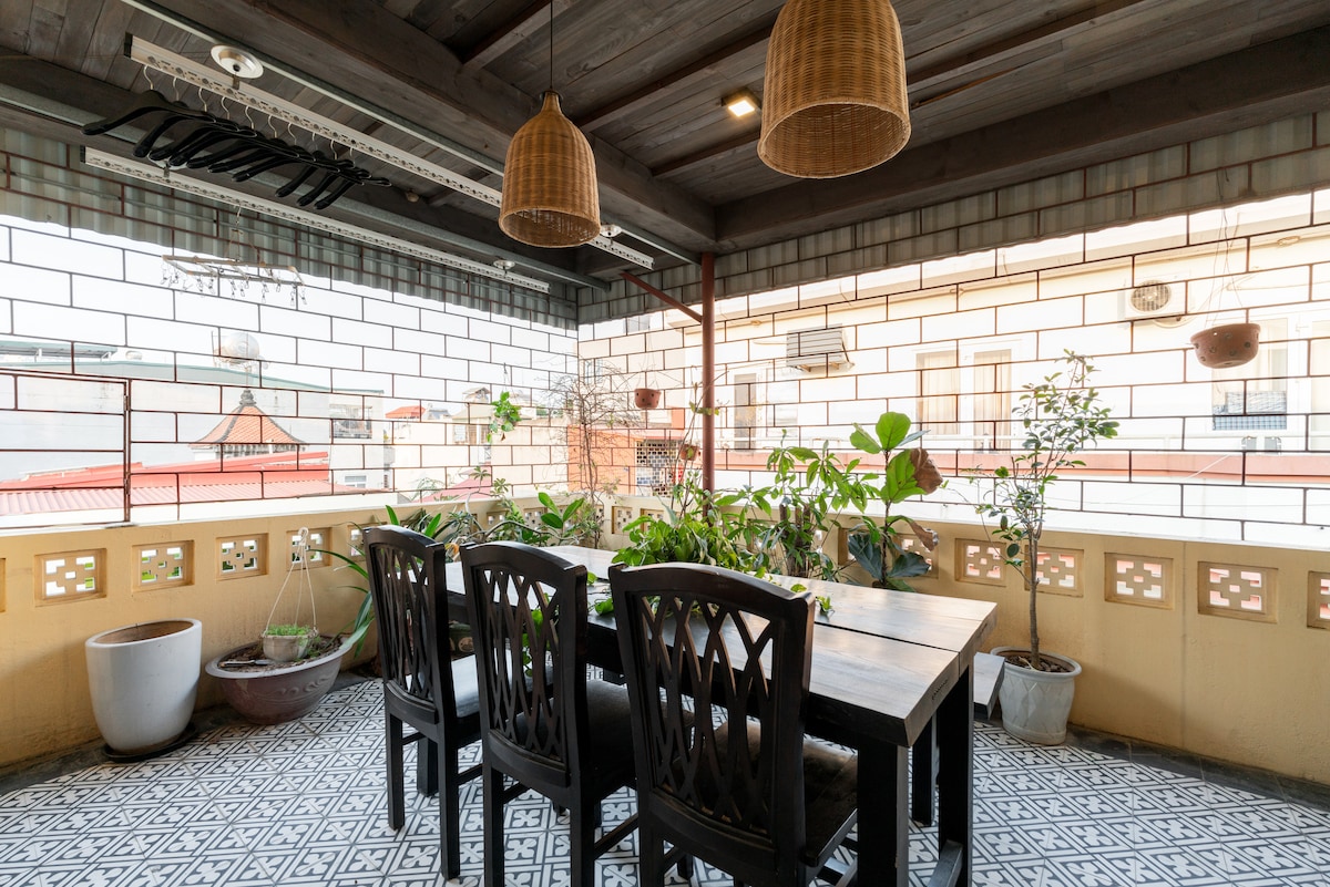 Karibu kwenye % {smart MAI Homestay, ambapo uzuri wa kisasa unakutana na haiba isiyopitwa na wakati katikati ya Hanoi. Fleti yetu ya mtindo wa Japandi iliyokarabatiwa hivi karibuni iliyo na bustani ya paa kwenye ghorofa ya 4 ya jengo la kihistoria (hakuna lifti) inatoa mazingira safi, yaliyopozwa na yenye starehe kwa hadi wageni 4. Dakika chache tu kutembea kutoka Ziwa Hoan Kiem, makazi yetu ya nyumbani yanakualika ujue uhalisi wa jengo la eneo husika. Hakuna LIFTI! Hakuna shida! Usaidizi na mizigo yako ni ombi tu.