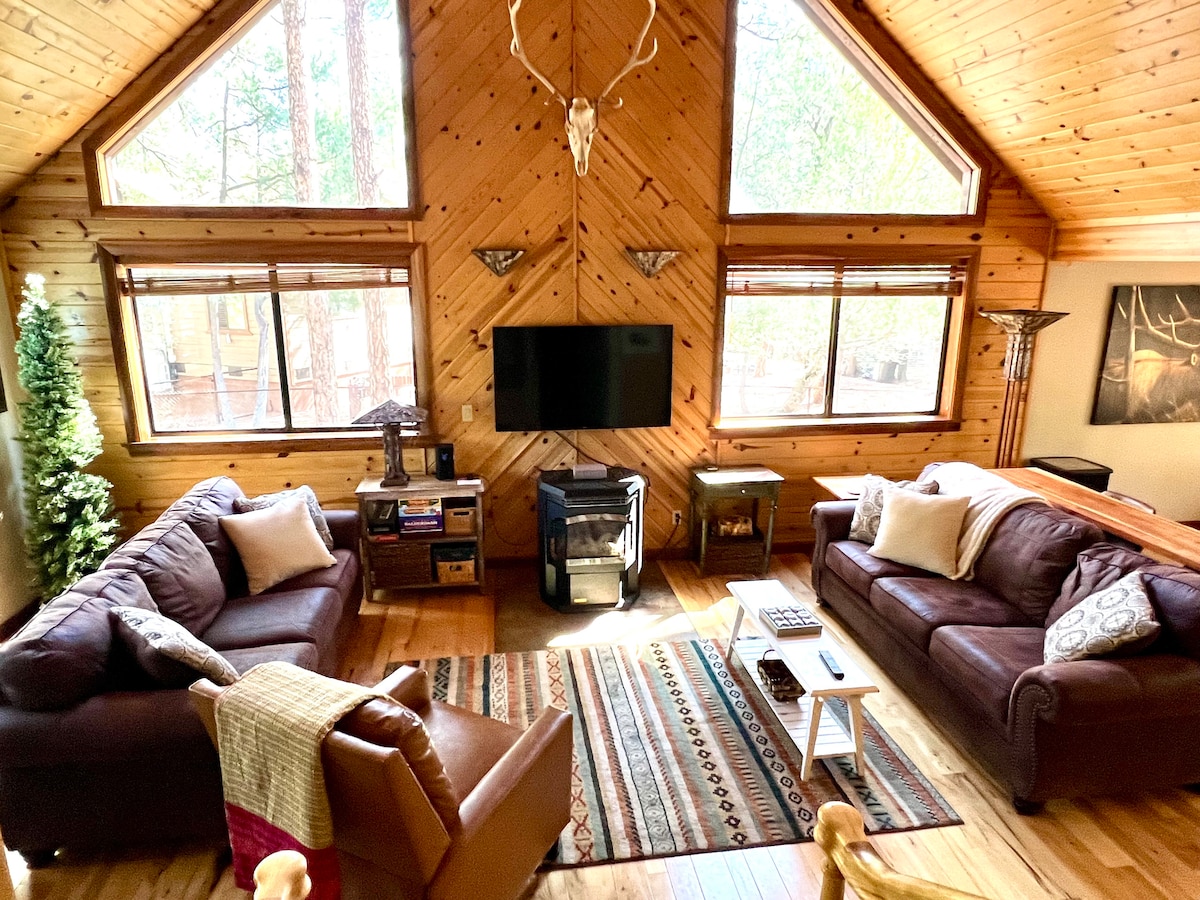 Rim View: Ambapo sababu pekee ya kuondoka ni ili uweze kurudi tena. Pata mandhari ya kupendeza kutoka kila dirisha na sitaha ya kuzunguka huku ukifurahia starehe za nyumbani. 3BR, 2BA na sehemu nyingi za nje hufanya Rim View iwe bora kwa hadi watu 6. Tengeneza chakula cha jioni katika jiko la vyakula au jiko la kuchomea nyama kwenye baraza huku ukiangalia jua likitua juu ya Rim. Unaweza kuendesha gari chini ya mlima, ugeuke moja kushoto kwa yote ambayo Pine inakupa. Pine ni gari rahisi na chini ya saa 2 kutoka kwenye Bonde.