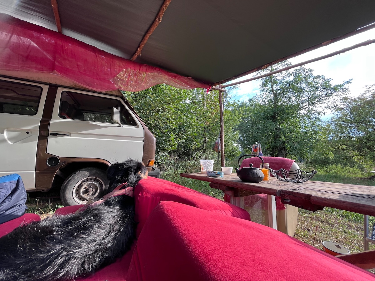 CamperVan, nyumba kwenye magurudumu, karibu na mazingira ya asili