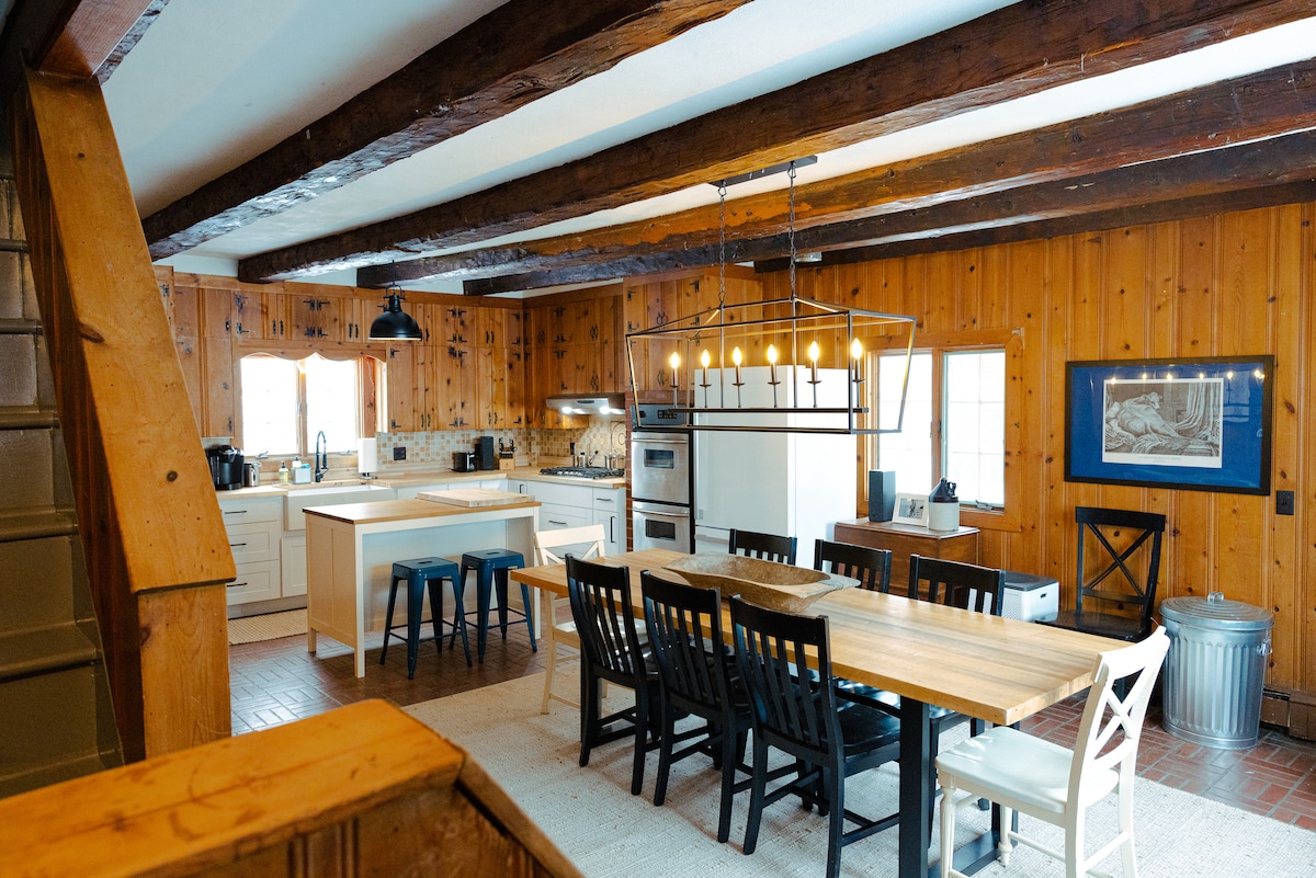 Njoo upumzike katika utulivu wa eneo tulivu la mashambani. Nyumba hii ina mandhari nzuri, mahali pa kuotea moto mkubwa wa mawe, na madirisha ya kioo yenye madoa katika nyumba nzima. Furahia starehe za nyumbani na jiko kamili, vistawishi, na vitanda vilivyo na mashuka 1500 ya uzi huku ukichunguza vipengele vya kupendeza vya nyumba hii ya aina yake. Keti kando ya bwawa la chemchemi linaloangalia nyumba iliyojazwa miti ya tufaha. Nyumba ina ufikiaji wa moja kwa moja kwa njia fupi za kutembea na iko karibu na njia KUBWA za kuteleza kwenye theluji.