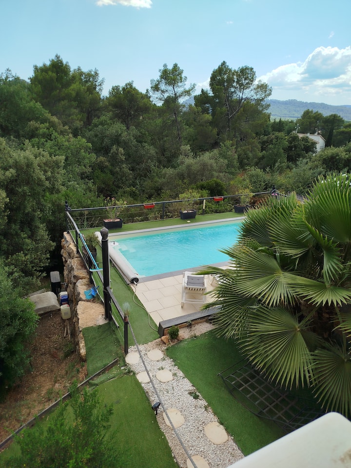 Studio ya watu 2 katika vila iliyo na bwawa