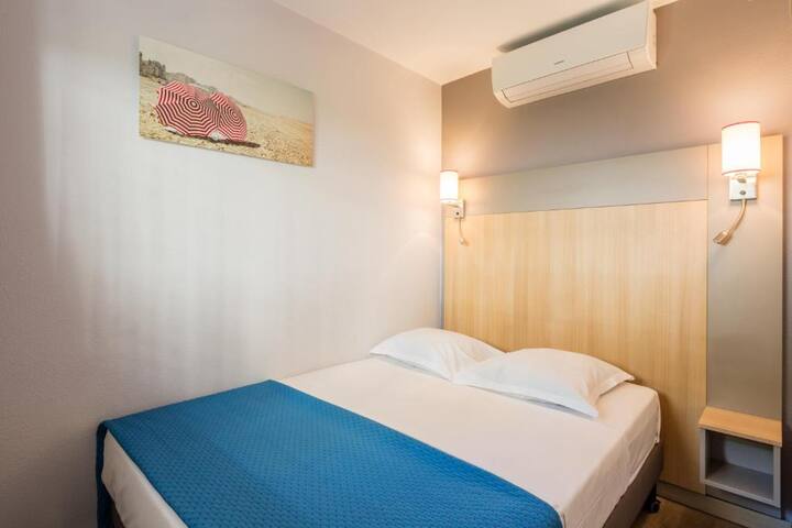 Fikiria bwawa la kuogelea lenye mandhari ya bahari, bustani kubwa yenye mimea ya Mediterania na hali ya hewa ya jua: uko kwenye theResidence Pierre & Vacances L'Ange Gardien.