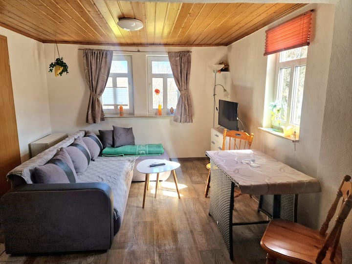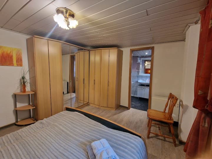 Ninatoa huduma iliyotunzwa vizuri, yenye samani kwa upendo, iliyo na vifaa vya kutosha kuhusu fleti ya 60 m2. Fleti iko moja kwa moja kwenye Rothaarsteig, lakini iko kimya katika kijiji cha Erndtebrück na basi la moja kwa moja na uhusiano wa treni. Vifaa vya ununuzi vinapatikana kwenye tovuti.