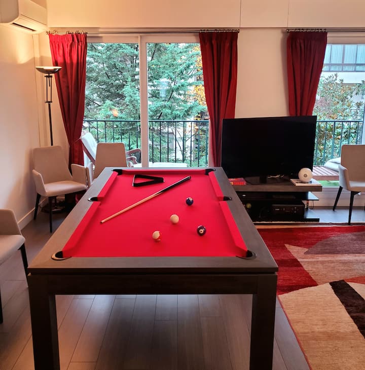 Vyumba 2 magharibi mwa Paris vyenye roshani, snooker, A/C