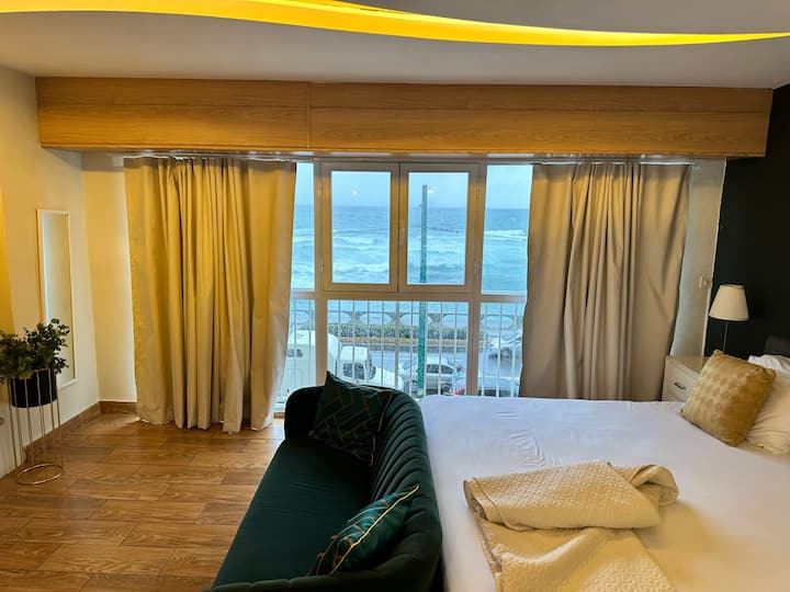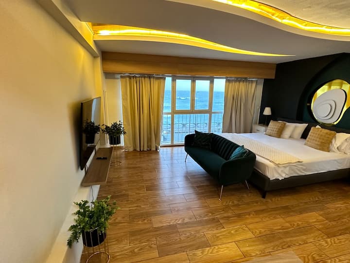 Studio maridadi w/ 65" TV na mtazamo wa bahari