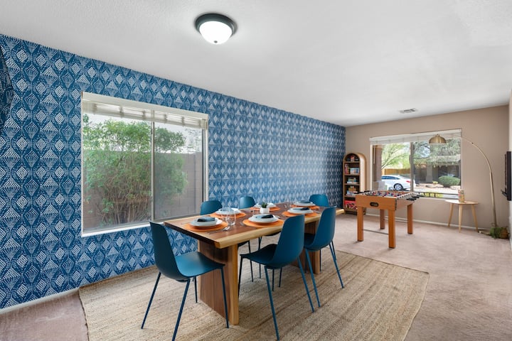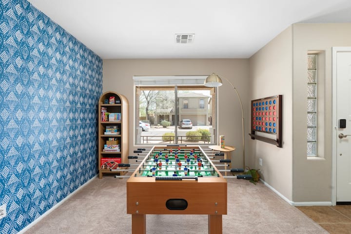 Kuanzia kahawa inayochomoza jua kwenye baraza hadi mashindano ya mpira wa magongo katika chumba cha michezo, nyumba hii yenye ghorofa mbili ina kila kitu unachohitaji kwa ajili ya ukaaji wa kukumbukwa, wa starehe na wa kufurahisha huko North Phoenix. Iliyoundwa kwa uangalifu kwa ajili ya familia, wataalamu na makundi sawa, inachanganya starehe, urahisi na matukio yaliyopangwa.