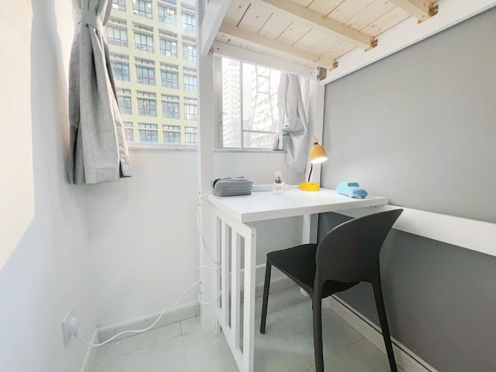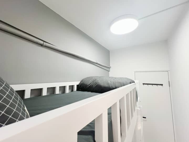 Hii ni bweni yetu ya pamoja, chumba chetu cha kujitegemea cha Cozy Out kinachoangalia ni chumba kimoja cha kulala cha Air-Con na dirisha! Chumba hiki kilicho na kitanda kimoja cha ghorofa cha juu kinachopima 80cm x 173cm na dawati lililowekwa na kiango cha nguo nyuma ya mlango wa chumba! Iko katika eneo zuri sana! Kutembea kwa dakika 5 tu kwenda WanChai MTR! Sehemu inayofaa ya kuchunguza hk na kurudi nyumbani haraka ili kupumzika.
