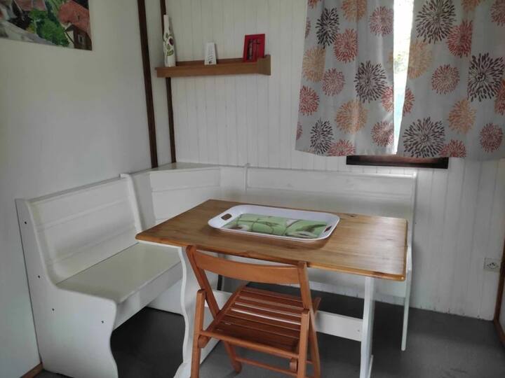 Utakaa kwenye chalet yenye starehe ambayo inaweza kuchukua watu 4.