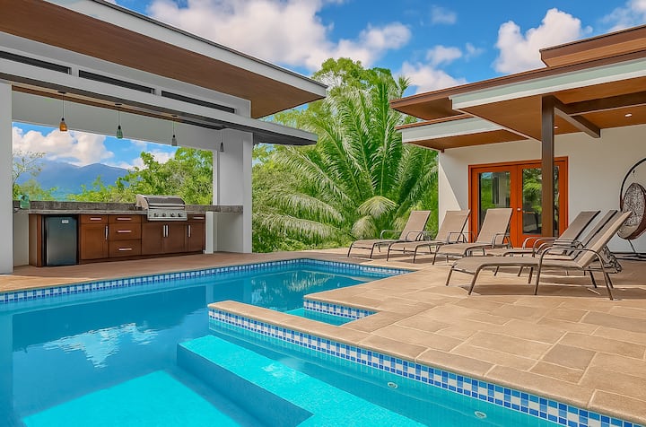 Nyumba za kujitegemea, za kisasa-katika msitu, kwenye mlima, unaoangalia bahari katika Pasifiki ya Kusini ya Costa Rica…na bwawa, bila shaka.
