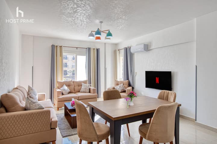 Fleti ya Bright-Host Prime 2BR katika Jiji la Rehab