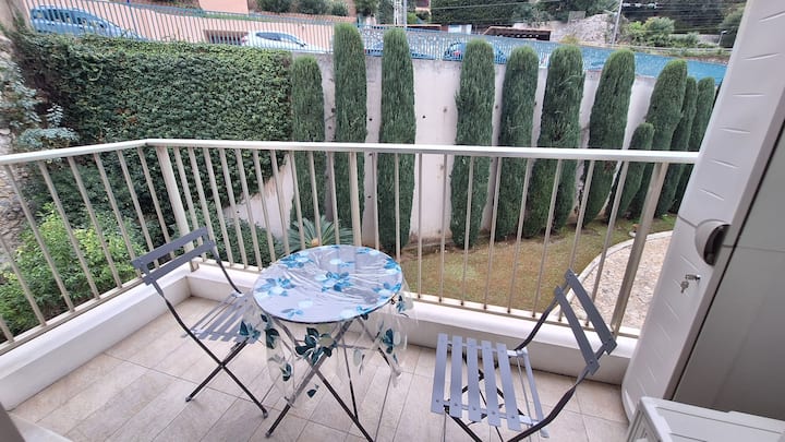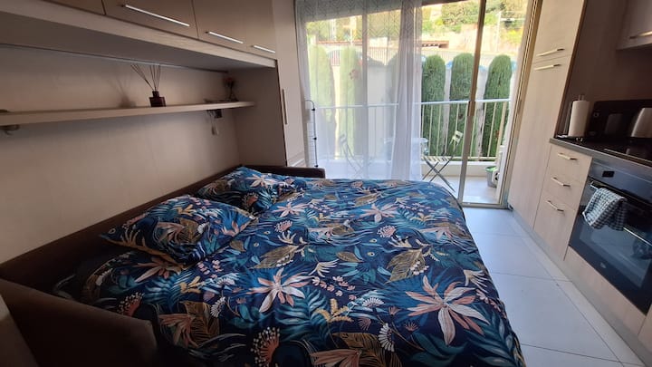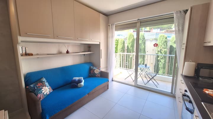 Studio nzuri na roshani kando ya bahari ya Menton