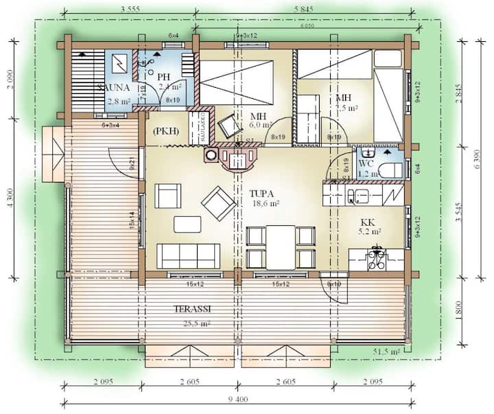 - vyumba 2 vya kulala