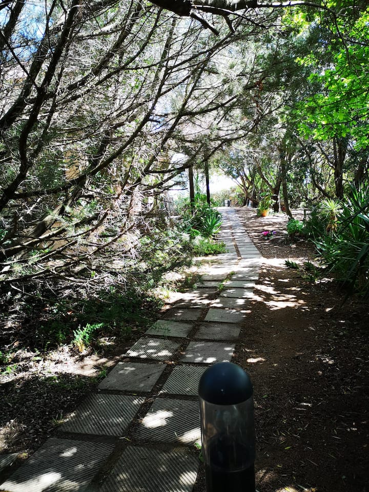 Nyumba iliyozungukwa na fukwe iliyozungukwa na greenery