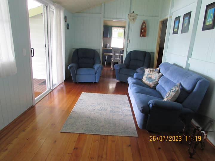 Nyumba ina vyumba vitatu vya kulala ambavyo vinalala hadi watu wanane. Chumba kikuu cha kulala kina kitanda chenye ukubwa wa malkia. Chumba cha pili cha kulala seti mbili za maghorofa na cha tatu kitanda cha watu wawili. Vyumba vyote vya kitanda vina feni za dari pamoja na feni za miguu kwa usiku wa majira ya joto. Kuna aircon mpya katika chumba cha kulia chakula na vyumba viwili vya kulala ikiwa unavihitaji.