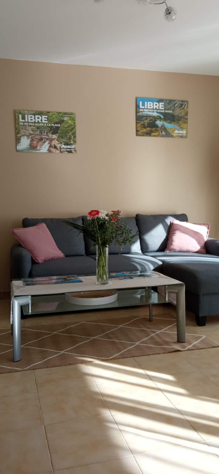 Nyumba ya shambani karibu na Montségur, yenye uwanja wa pétanque.