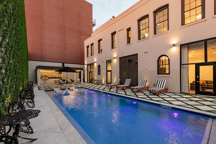 ‘The Pearl’ iliundwa kwa ajili ya usafiri wa makundi na tulijaribu kufikiria kila kitu kinachohitajika ili kufurahia ukaaji wako huko New Orleans. Chumba hicho kina vyumba 8 na kina vyumba vitatu vya kulala kila kimoja kikiwa na kitanda cha ukubwa wa kifalme, kitanda cha kulala cha ukubwa wa malkia sebuleni na kifaa cha kuchezea. Vyumba vyote vya kulala na sebule vina Televisheni mahiri ya Samsung iliyo na DirectTV na machaguo mengine mengi ya kutazama mtandaoni.