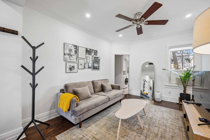 Bafu - Bafu angavu, linalofanana na Spa lenye sehemu 3 lenye Bafu la Kusimama Linakusubiri Mwishoni mwa Siku ndefu! Imewekwa na Shampuu, Kiyoyozi na Kuosha Mwili, Vyoo vya Ziada Pia Hupatikana Chini ya Sinki, Pamoja na Kikausha Nywele.