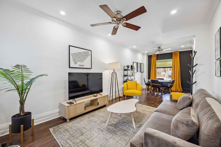 SEHEMU YA KUISHI • Pumzika Kwenye Kochi Wakati wa Ukaaji Wako na Ufurahie Nafasi ya Kuishi Iliyo wazi ambayo ina TV ya "55" na Programu Nyingi za Utiririshaji (Netflix, Disney+, Amazon Prime, Apple TV - Akaunti ya Mmiliki wa Wageni)