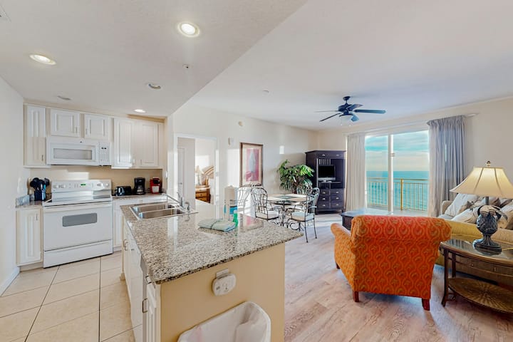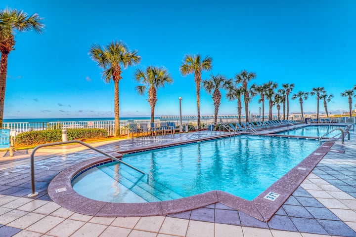 Kondo ya ufukweni ya vyumba 2 vya kulala iliyo na bwawa, mandhari ya Ghuba, roshani