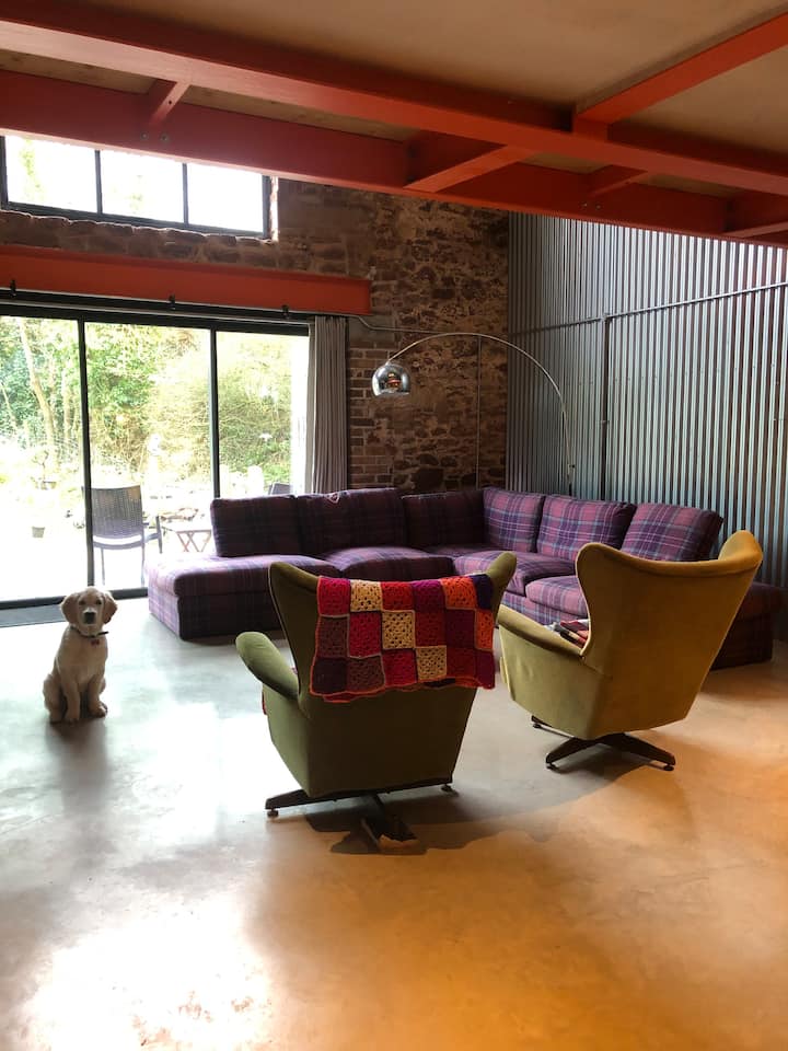 Banda la kisasa na lenye nafasi kubwa, bustani kubwa, linalofaa mbwa