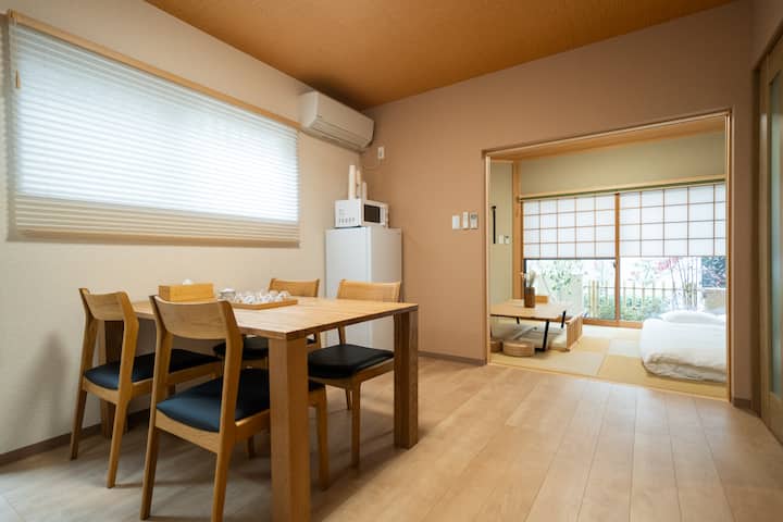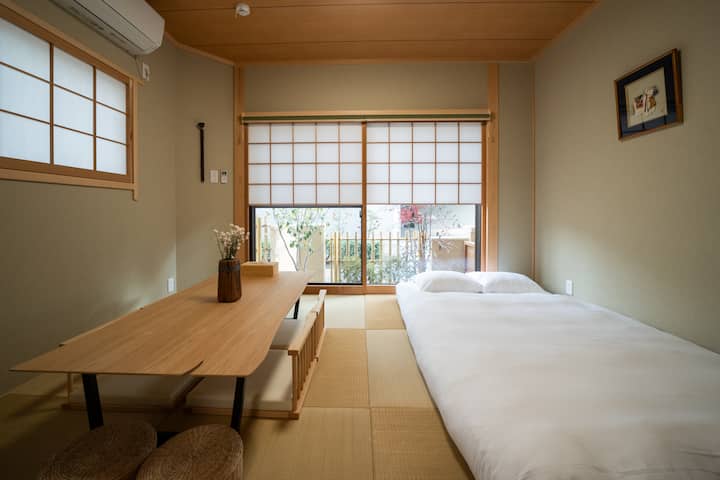 Imeunda utamaduni wa Kijapani, usanifu majengo, na bustani, na pia ina vifaa kamili. Tunatumia matandiko ya kifahari yaliyochaguliwa kwa uangalifu na vistawishi mahususi vya hoteli ili kufikia starehe bora katika tukio lako.