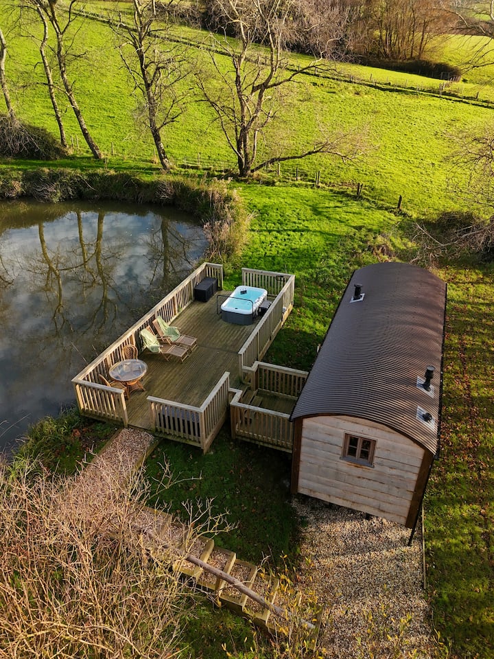 Kibanda cha Wachungaji/Beseni la Maji Moto Pwani Binafsi ya Ziwa Jurassic