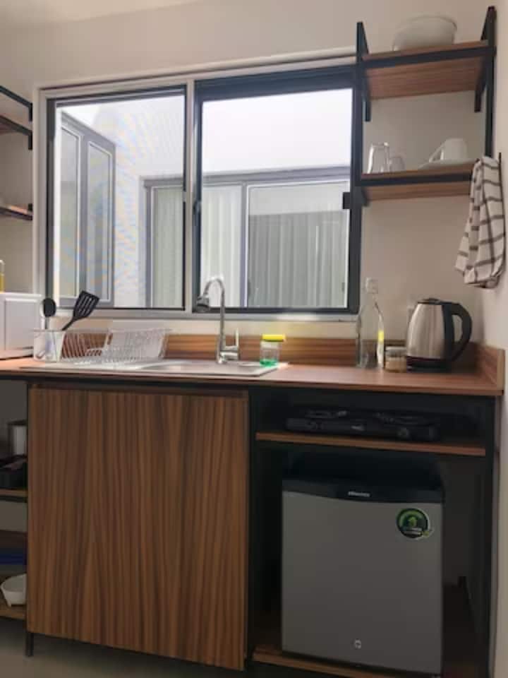Sehemu hii ina bafu ambalo limeunganishwa na chumba chako.
