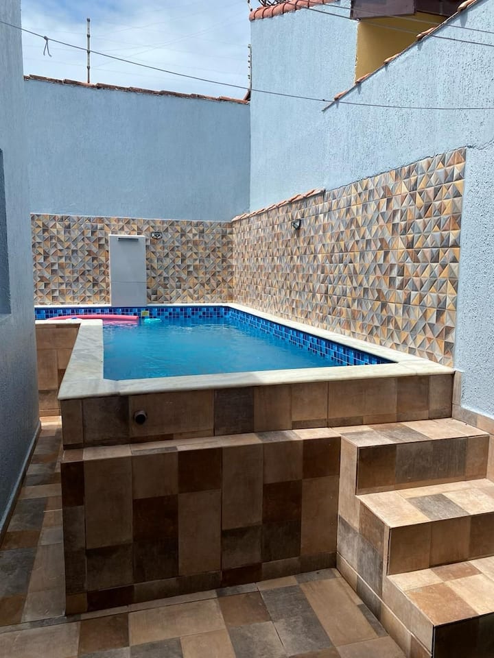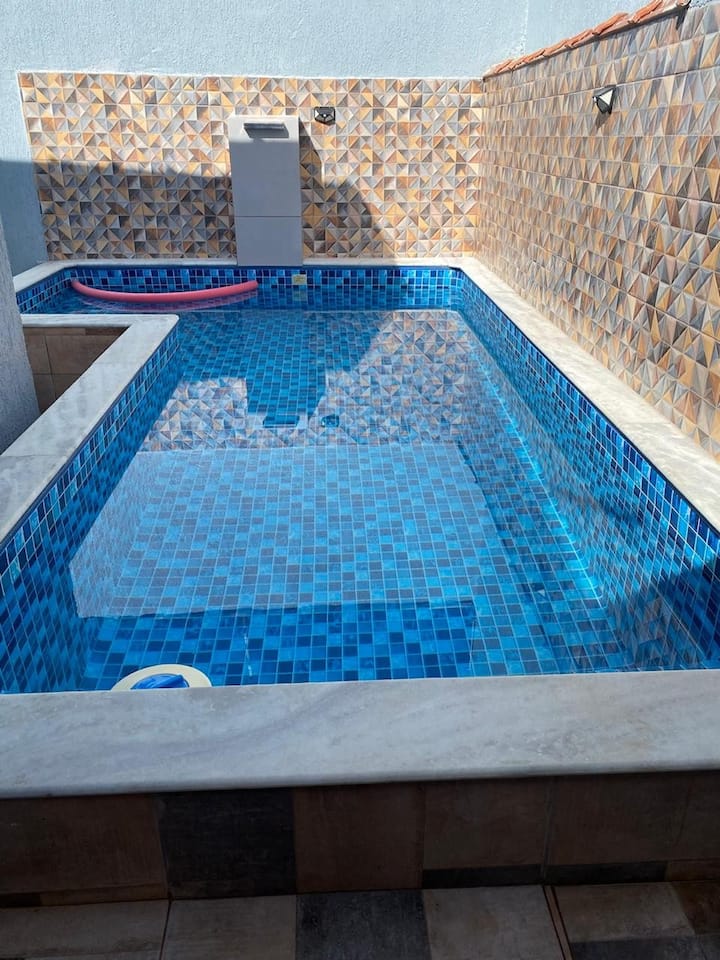 nyumba ya ufukweni iliyo na bwawa la kujitegemea, eneo la vyakula vitamu